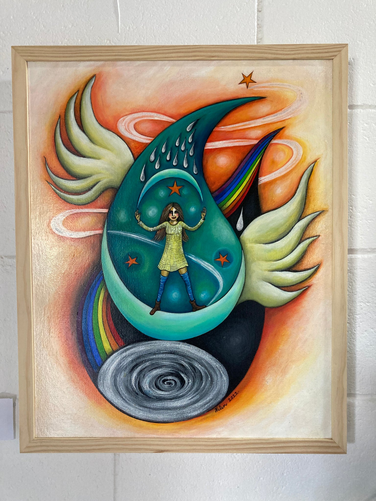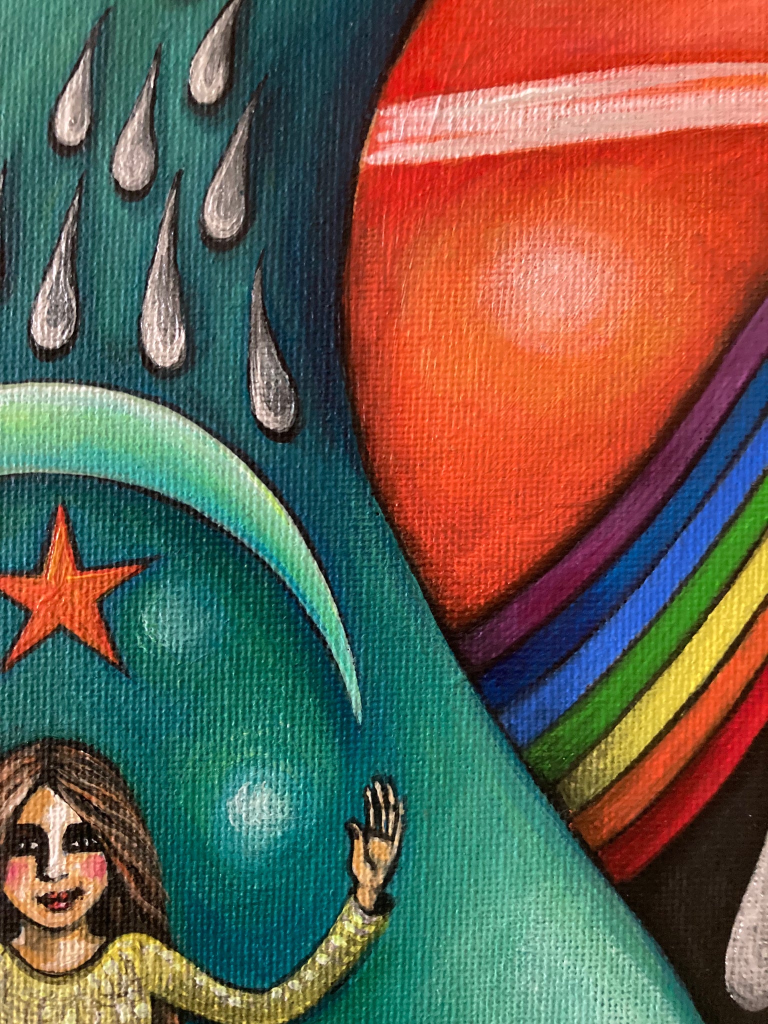 Vibrant original acrylic painting on canvas - 43 x 53 cm (framed). This piece began as an intuitive small coloured pencil drawing - I wanted to try it as a bigger painting.